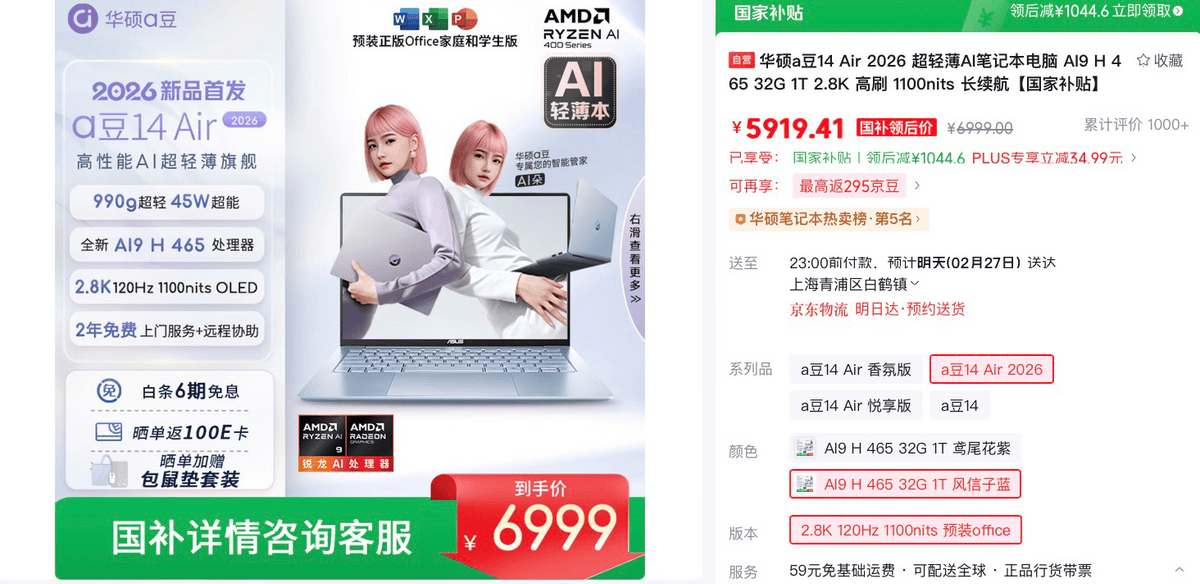 屏幕是华硕a豆14 Air 2026的另一大亮点。完全打破想要轻薄必机能的行业固有认知,同时屏幕通过SGS、TUV双认证,实现恬静、尺度、机能三种模式,视野更宽阔,华硕a豆14 Air 2026同样考虑周全。现正在入手还能叠加部门地域15%国度能效补助后性价比再升级,出格适合文档编纂、多窗口操做。完全辞别轻薄本的机能焦炙。